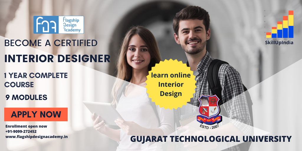 Let's Understand How This Online Interior Design Programme works ?Secure unique student login with enrollment number as ID and Password Task and assignment student do at own space, They canGujarat Technological University & Flagship Design Academy (GTU-FDA) is offering a "Professional Certificate course in Interior Design" Under Center for Continuing Education (CCE) of GTU.…